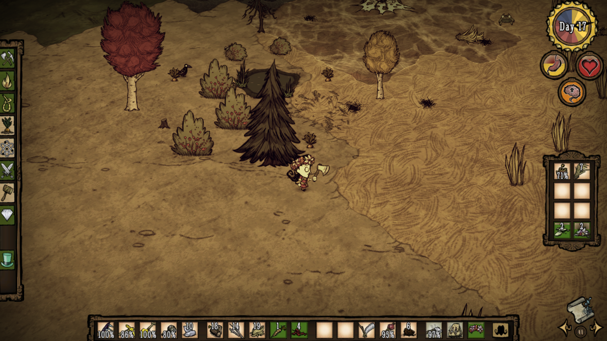 DSTは、Don't Starveの拡張パック「Reign of Giants」込みの、マルチプレイが可能になったバージョンです。こちらは今年の4月にリリースされましたが、DS自体は2013年?にリリースされていて、DSをもともと購入していた人は無料でDSTにアプデできたようです。