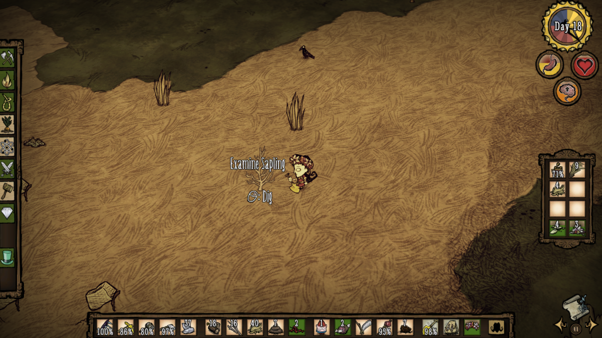 DSTの日本語版攻略wikiはまだ充実していないように見えます。アップデートや拡張パックによって仕様が異なるようで、wikiやレビュー等で仕入れた情報と違うことがしばしばあります。ともかく死んで覚えるゲームです(^o^)