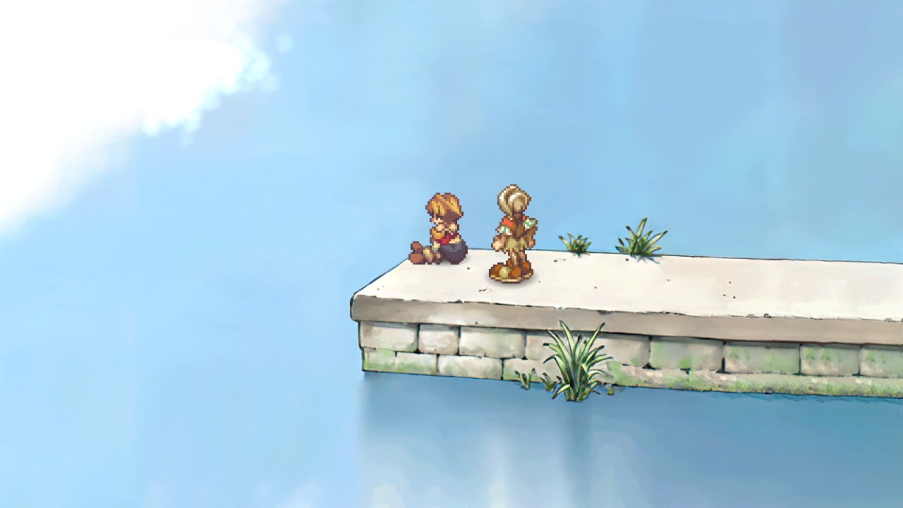 グラフィックは1枚の水彩画の上を歩くような感じで、クロノクロスとか聖剣伝説LoMに近い印象です。カメラが遠いマップを歩いているときは前作のサガフロ1を感じることも。